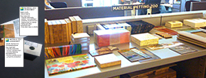 Joining the Society for Environmental Graphic Design's webinar panel to discuss the overall impacts of economy and sustainable choices with respect to materials, contextual ecology, and planning, I had a chance to share "The Green Project" initiative launched for the Exhibit and Graphic Arts Department at the Wildlife Conservation Society. Shown above is a peek at the green Material Petting Zoo and material labels I'd introduced to the office.