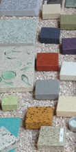 Paperstone: 100% post consumer paper. Non-toxic adhesive/binder made of non-petroleum based phenols, formaldehyde free.